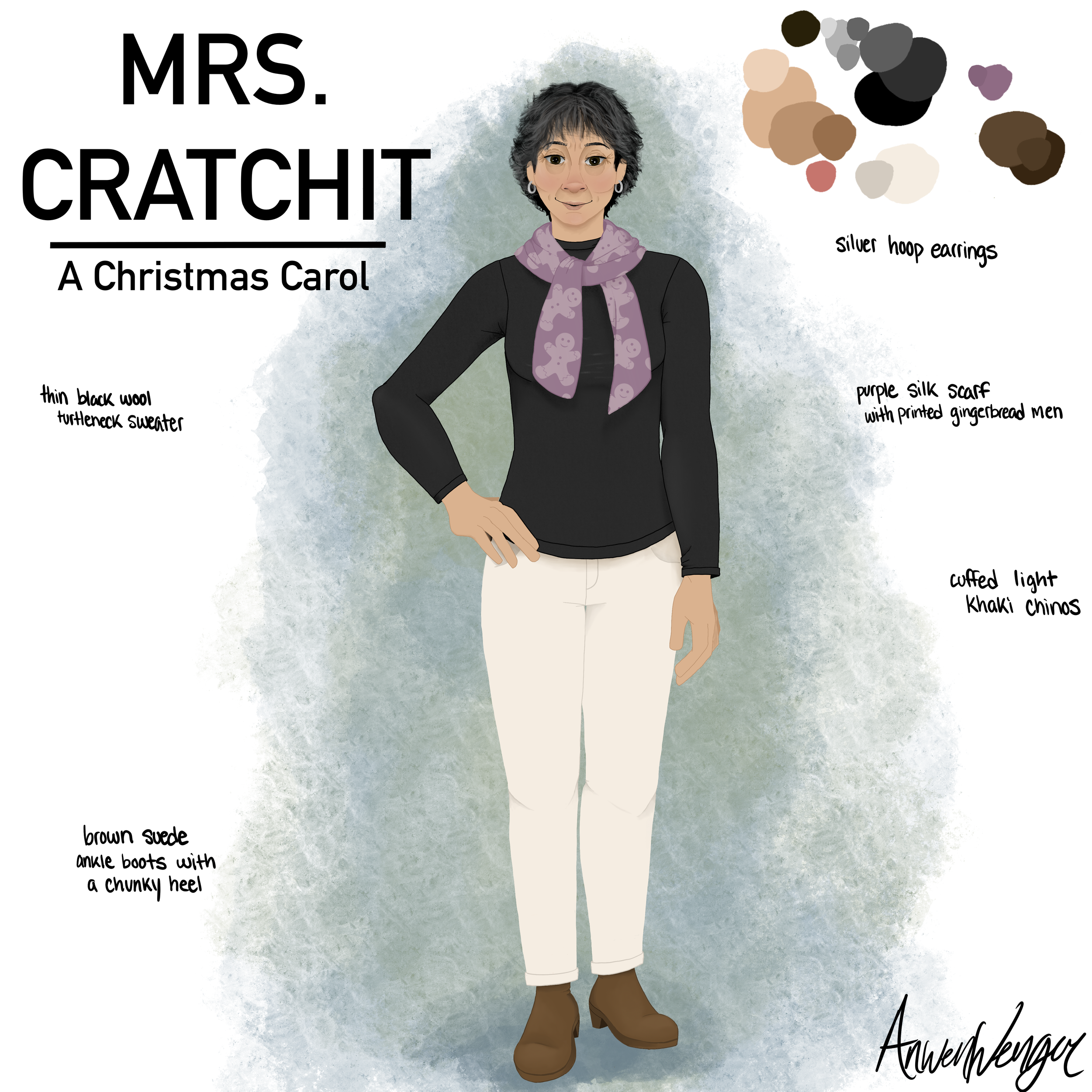 Conceptually, the main plot is set in modern day (2022) London. The Ghost of Christmas Past is represented by 1970’s disco attire, while the Ghost of Christmas Present is represented by a christmas-style dress reflective of today’s micro-trends. The Ghost of Christmas Future is shown in a subversive basic style; multiple layers with heavy distressing. I wanted to bring Dickens’ classic tale into the modern era, with a focus on the three Christmas ghosts to illustrate the ever-changing fashion world.